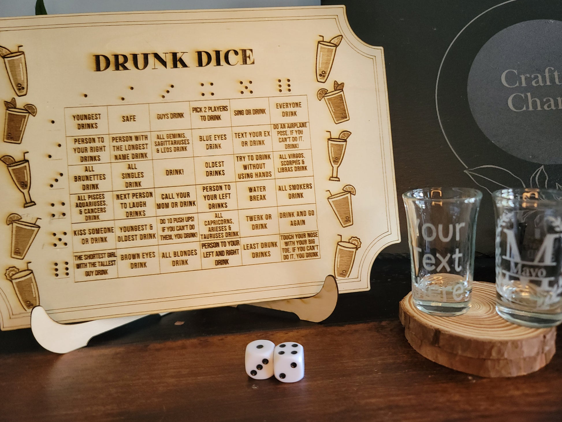Elevate your next party or gathering with the Drunk Dice Drinking Game. Made from high-quality basswood, this handcrafted game board and dice set is perfect for any occasion. With endless variations and guaranteed fun, it's the perfect addition to your collection.