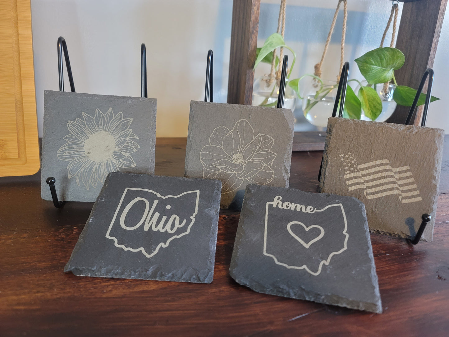Due to natural slate stone material and uneven ridges, engraving outcome may vary between coasters